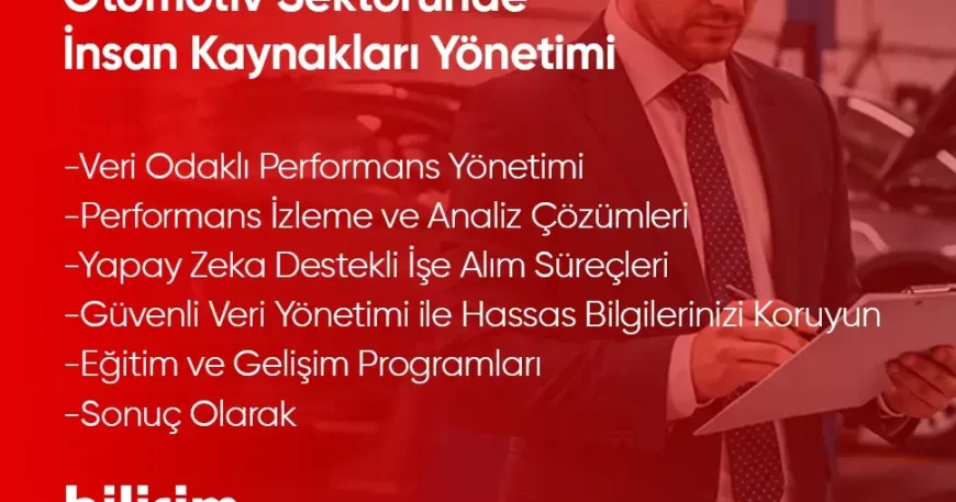 Otomotiv sektöründe insan kaynakları yönetimi, şirketlerin operasyonel verimliliğini artırmasının yanı sıra çalışan memnuniyetini ve bağlılığını da destekler.BilişimHR, veri odaklı performans yönetimi, yapay zeka destekli işe alım ve güvenli veri yönetimi gibi çözümleriyle otomotiv sektörüne özel stratejik avantajlar sunmaktadır.